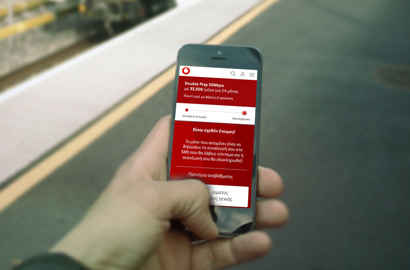 Vodafone fixed customers can now upgrade their fixed plan to VDSL online, in order to enjoy fast broadband at home. When a customer is eligible to upgrade to VDSL, he receives an sms and he is redirected to an one time password page to enter his fixed number. Animations specific to fast broadband speed, were introduced in order to make the upgrade experience happy. User test results prove that the upgrade journey had a positive impact on eligible customers and overall experience was very quick and simple.